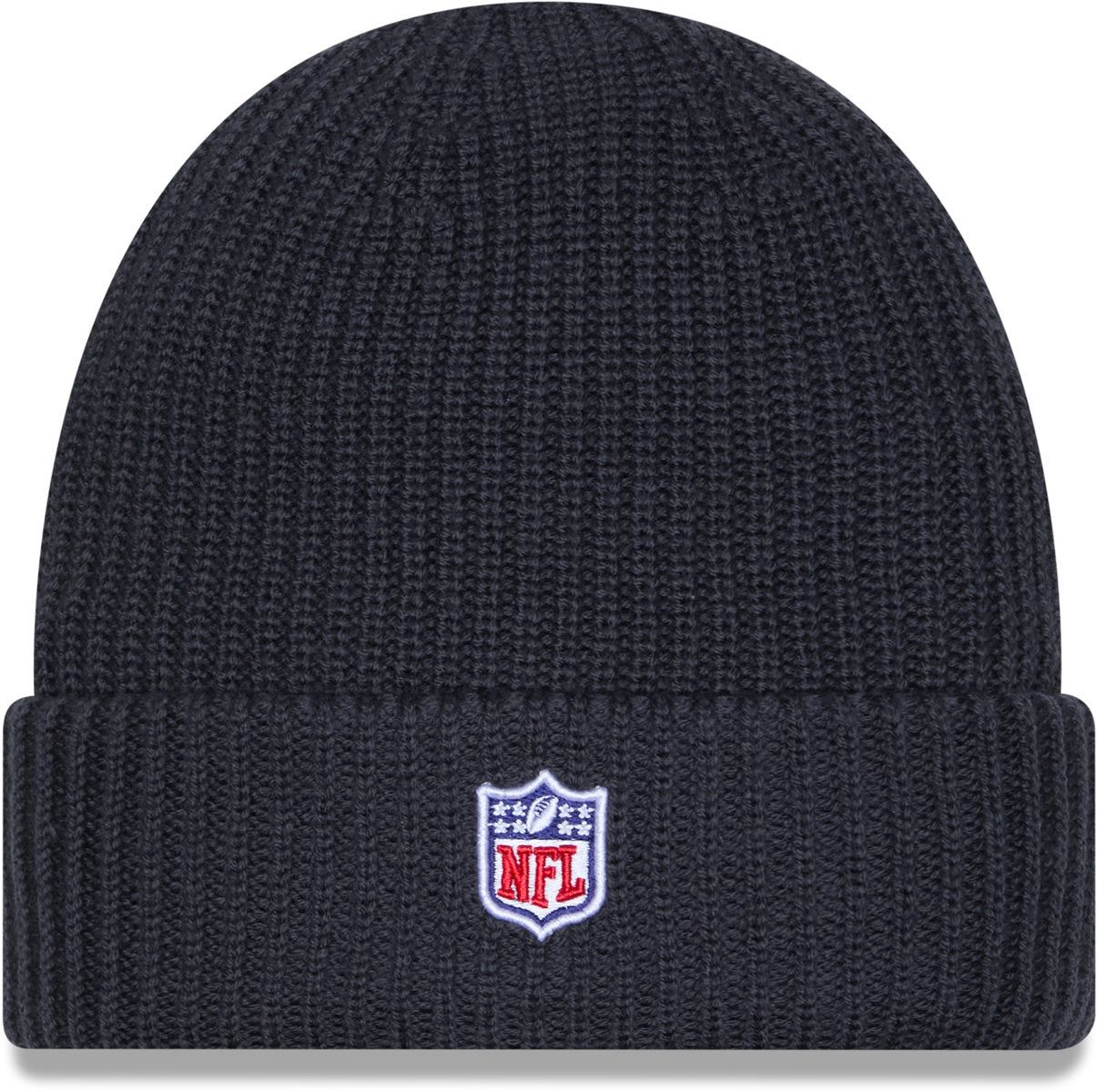 Seattle Seahawks New Era NFL 2025 Sideline Cold Weather Cuff Knit Beanie. Black with the Seattle Seahawks rubberized logo, the New Era Flag logo and the NFL logo, on the Upturned Cuff. Official NFL Sideline Team merchandise. One Size Fits Most Size range 55cm - 62cm.