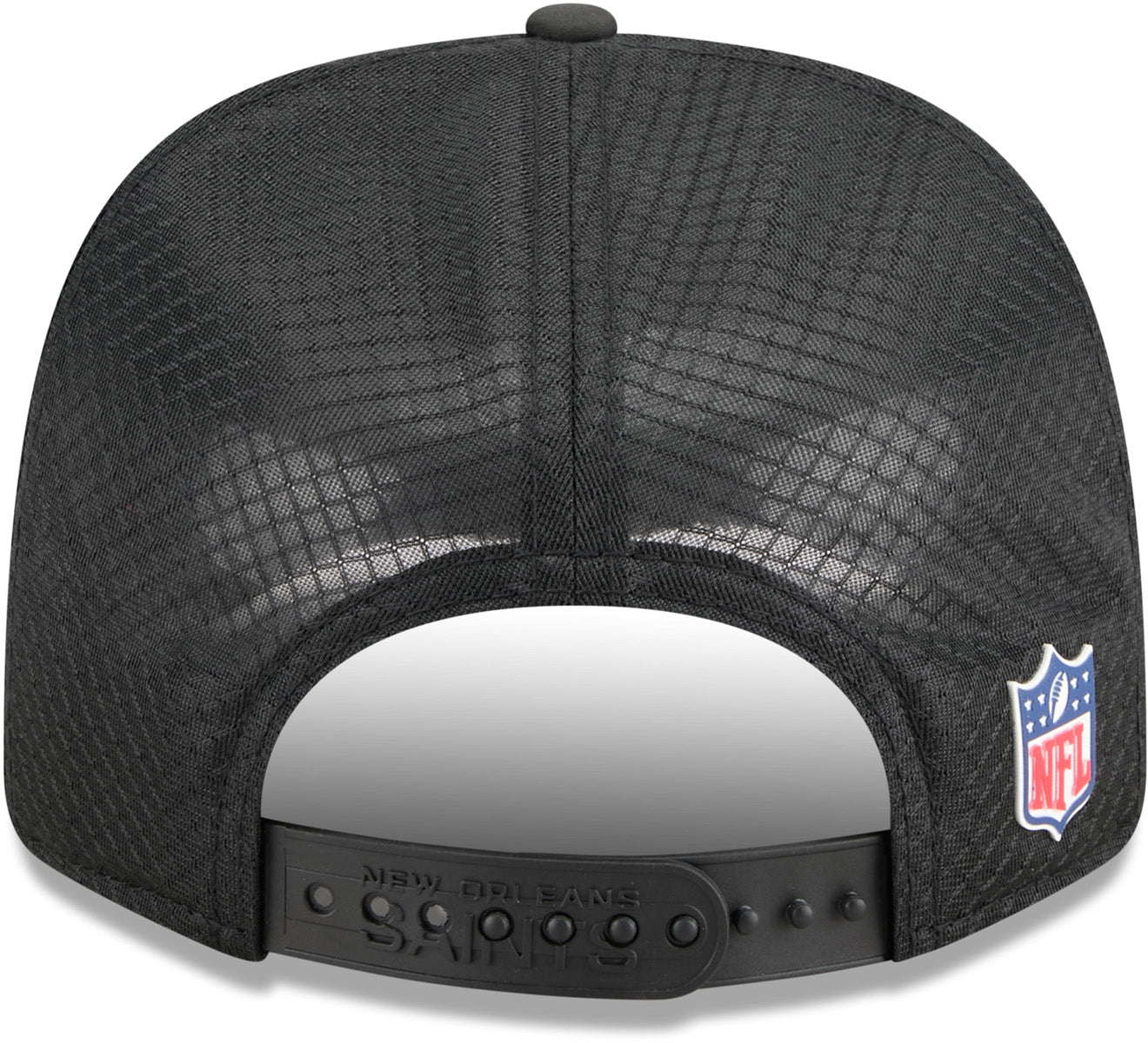 New Orleans Saints New Era 9Fifty SP NFL Sideline 2025 Cold Weather Snapback Cap. Official Sideline NFL Team merchandise. Structured Crown, with the Flat Visor. Black wipe clean fabric, the Stitch detail front panel, with the Rubberized New Orleans Saints front logo, the New Era flag side logo, the NFL rear logo, and the Team colour stripes o...