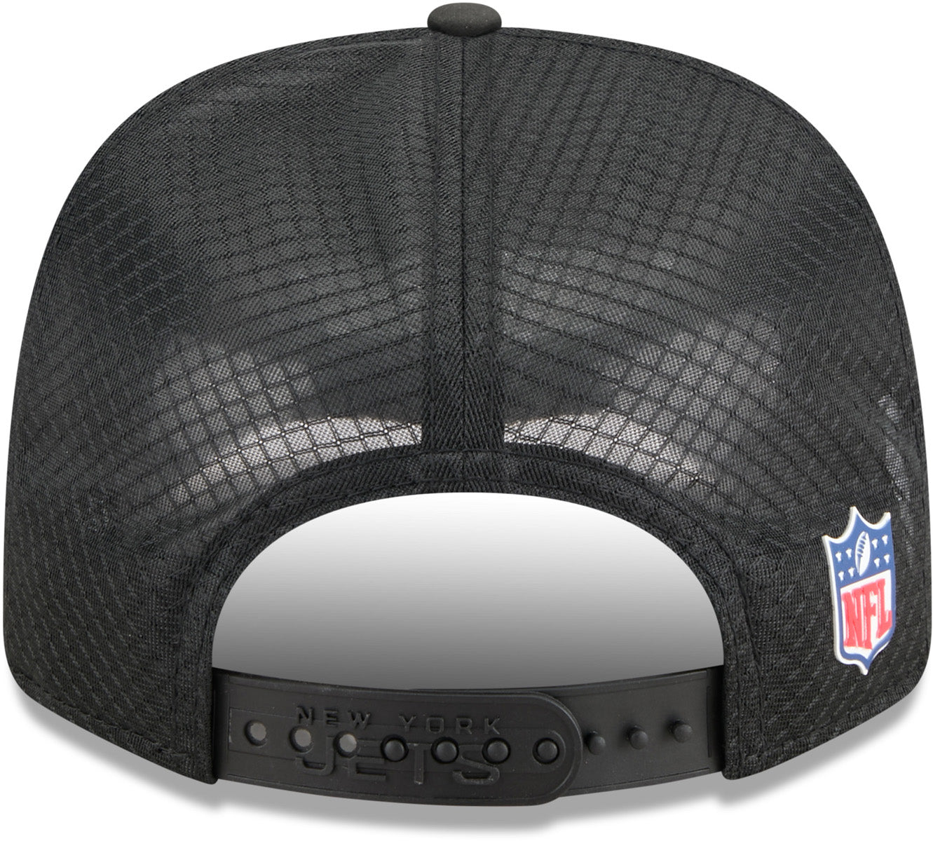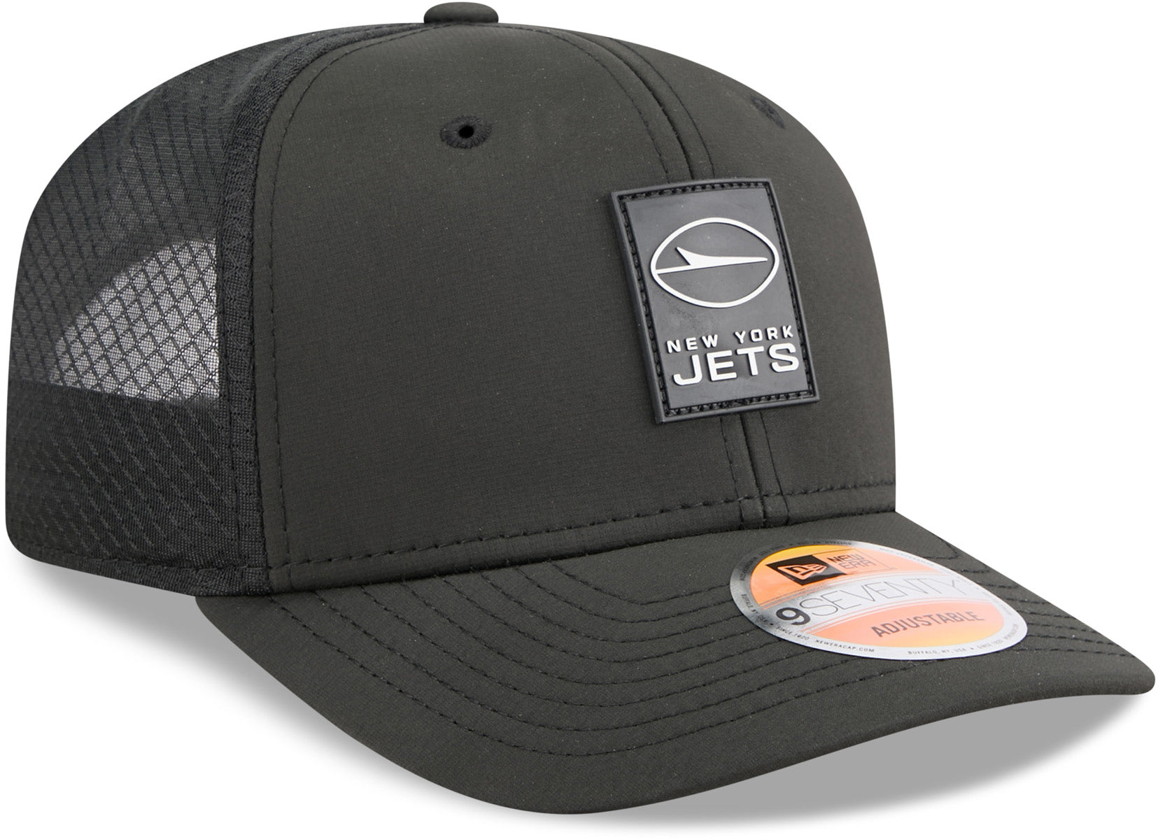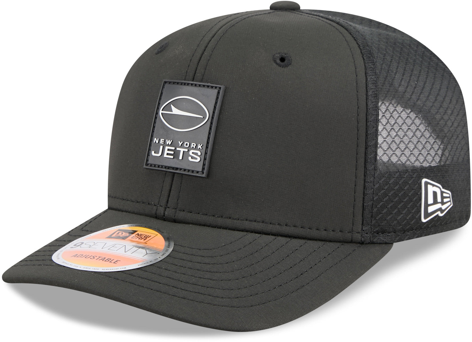 New York Jets New Era 9Fifty SP NFL Sideline 2025 Cold Weather Snapback Cap. Official Sideline NFL Team merchandise. Structured Crown, with the Flat Visor. Black wipe clean fabric, the Stitch detail front panel, with the Rubberized New York Jets front logo, the New Era flag side logo, the NFL rear logo, and the Team colour stripes on the unde...