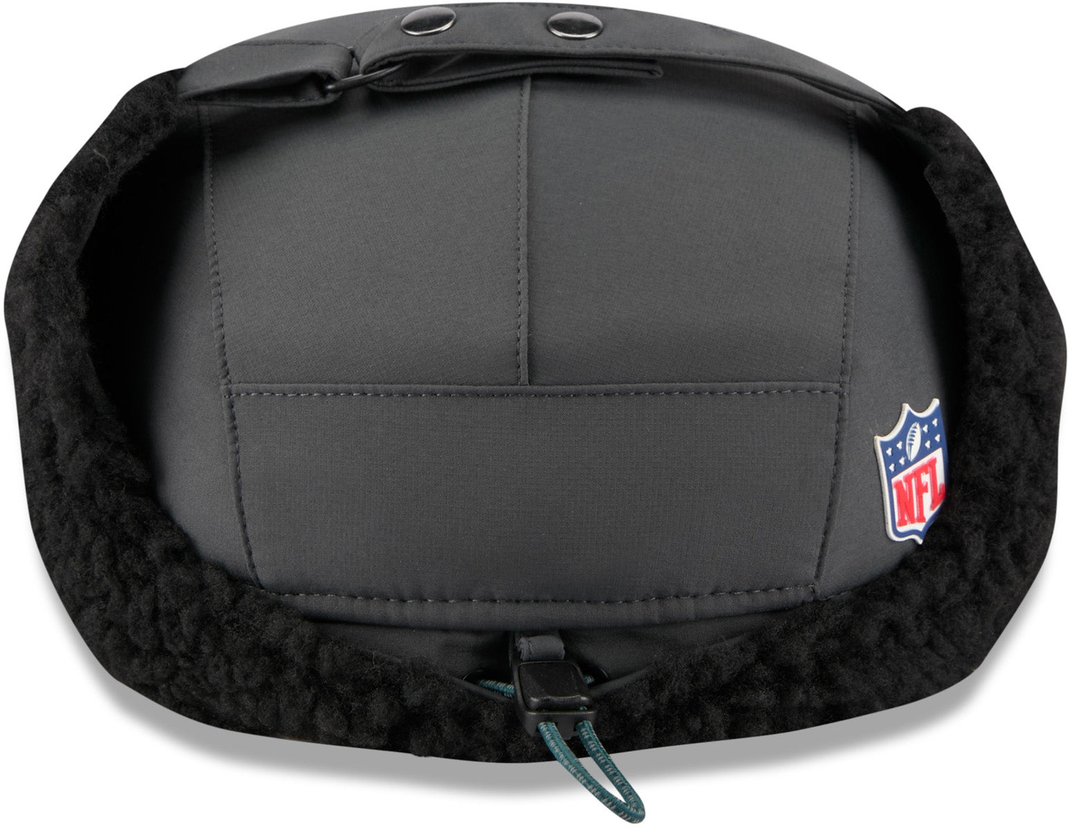 Las Vegas Raiders New Era Sideline 2025 Cold Weather Runner Dog Ear Adjustable Cap. Official Sideline NFL Team merchandise. Black wipe clean fabric, the Stitch detail front panel, with the Rubberized Las Vegas Raiders front logo, the New Era flag side logo, the NFL rear logo, and the adjustable rear toggle. The cap is fully fur lined, with t...