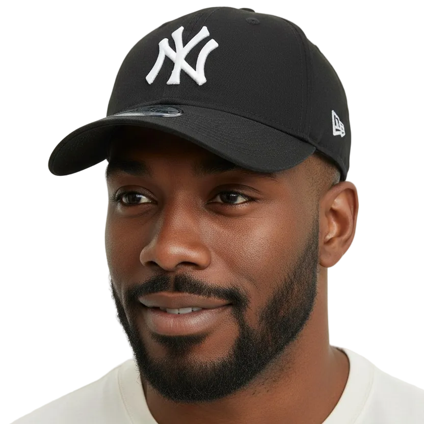 • Black, with the officially licensed New York Yankees, 'NY' front logo, and the New Era side logo.